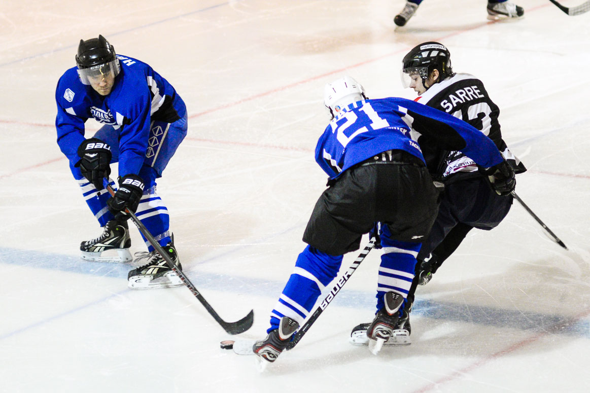 Panttereiden Joel ”kuurankukka” Sarre kynäili Reidarsin päät pyörälle moneen otteeseen. Mukana menossa Lauri Hanski ja Miika Salli. Kuva: Jouni Porsanger